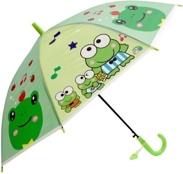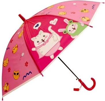 Na voljo je več motivov – ljubke mucke, veseli žabci, barviti dinozavri ali polarne živali. Vsaka različica ima barvno usklajen ukrivljen ročaj za zanesljiv in udoben oprijem. Vzdržljiva strešna konstrukcija zanesljivo ščiti pred dežjem in spremeni sivo vreme v zabavo.