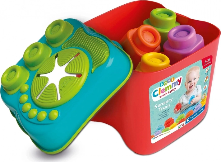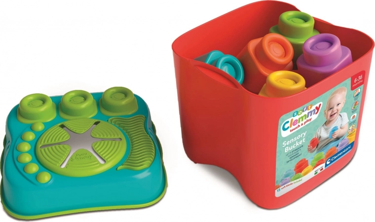 Praktična plastična škatla s teksturiranim pokrovom služi kot stabilna podlaga za gradnjo in kot sorter za vstavljanje kock. Mehke in prožne kocke Soft Clemmy so izdelane iz netoksičnega materiala, prijetnega na dotik in z nežnim vonjem vanilje. Odlično so primerne za prvo raziskovanje oblik in barv, zaradi enostavnega vzdrževanja pa jih lahko vzamete tudi v vodo.