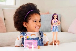 Punčka Skipper z vijoličnimi prameni las nosi filmski outfit in je pripravljena na množico zgodb o negi in nežnem polaganju k spanju. Zaradi številnih podrobnosti je set idealno darilo za otroke od 3. leta dalje, za sorojence in male varuške, ki obožujejo svet Barbie.