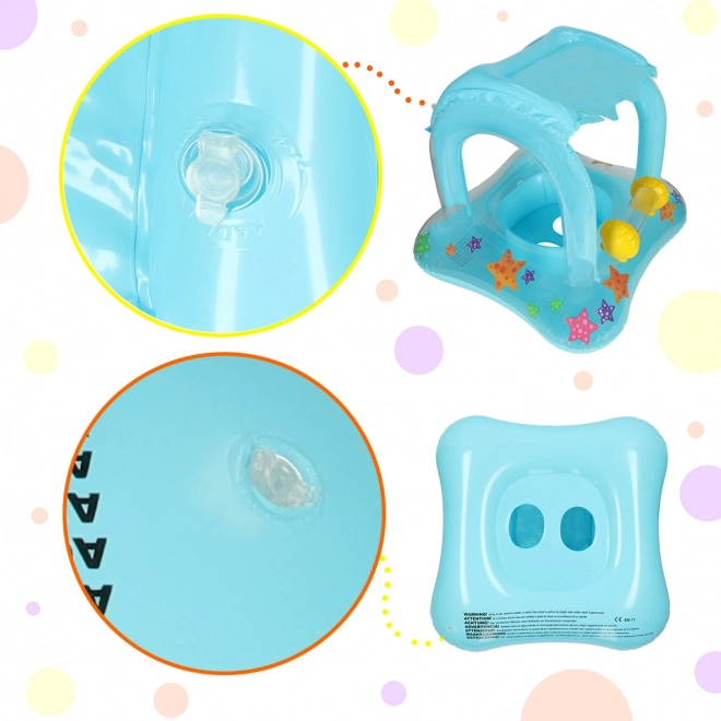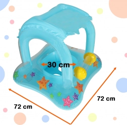 Napihljiv plavalni krog z baldahinom je idealna rešitev za varne vodne igre vaših najmlajših. Njegova privlačna modra barva in barvne zvezdice bodo polepšale vsak dan ob vodi. Baldahin ščiti otroka pred sončnimi žarki, medtem ko se lahko udobno igra in zazibava na valovih.