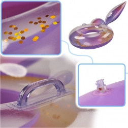 Načrtujete počitnice ob vodi? Potem je plavalni obroč z morskooko idealna izbira. Ta obroč ni le vizualno privlačen zaradi bleščic, ki čudovito odbijajo sončne žarke, ampak tudi nudi odlično udobje in stabilnost zahvaljujoč dvema ročajema na straneh.