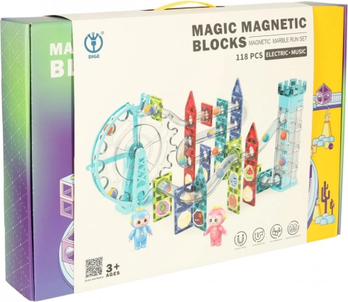 Odkrijte kreativno magnetno sestavljanko s prozornimi deli in krogličnim toboganom, ki navduši otroke in starše. Zahvaljujoč močnim magnetom konstrukcije trdno držijo skupaj, kroglice švigajo skozi premišljene tunele, posebni elementi, kot sta vrtljivo kolo in tira z dvigalom, pa zagotovijo neskončno zabavo. Glasbeni modul z veselo melodijo povzdigne igro v še bolj zabavno izkušnjo, ob sestavljanju pa se naravno razvijajo prostorska predstava, logično razmišljanje in fina motorika.