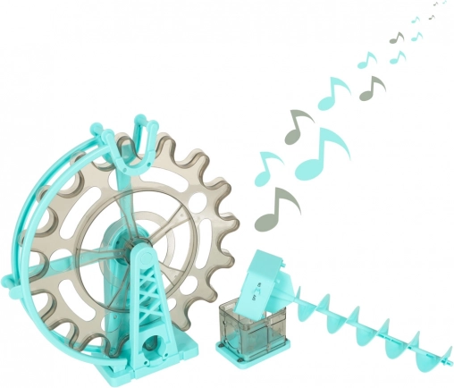 Vrtljivo kolo z melodijo in dvigalo vračata kroglice nazaj na začetek, zato se zabava kar ne konča. Odličen element za interaktivno in senzorično igro.