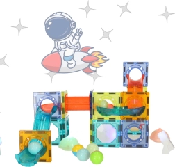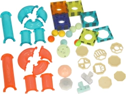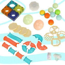 Set ponuja univerzalno gradnjo v 2D in 3D: od preprostih oblik do kompleksnih prog. Magnetni kvadrati zagotavljajo stabilno konstrukcijo, medtem ko se cevi in tunele enostavno vstavi “na klik”. Zahvaljujoč svetlečim delom in kroglicam se vsak spust spremeni v zabavno, vizualno privlačno predstavo.