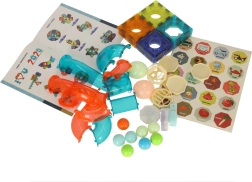 Gradnja podpira razvoj spretnosti: načrtovanje tras, testiranje hitrosti in gladkosti vožnje ter skupno izmišljanje novih različic. Trpežni plastični deli z dolgo življenjsko dobo in priložene nalepke dajejo stvaritvam izviren videz.