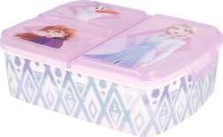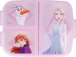 Izviren in funkcionalen večnamenski box za prigrizke, ki otrokom polepša vsak dan. Zaradi treh samostojnih pregrad zlahka ločite sadje in zelenjavo, sendvič ter majhne dobrote. Trpežna izvedba prenese udarce in padce pri vsakodnevni uporabi, privlačni motivi iz filma Ledeno kraljestvo 2 pa bodo otrokom zelo všeč.