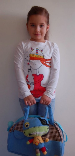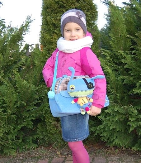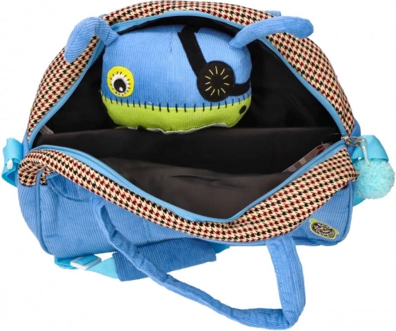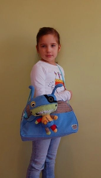 Nahrbtnik je izdelan v živahnih barvah in z igrivo plišasto pošastjo, ki spodbuja otroško domišljijo.
