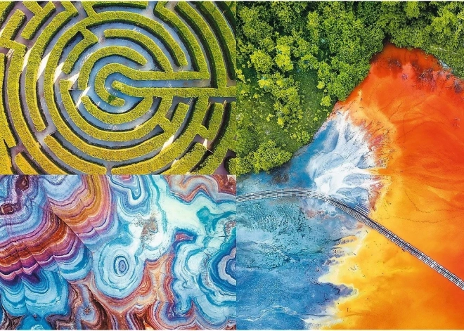 Potopite se v svet barv in tekstur z motivom, navdihnjenim z zračnimi pogledi na naravo – od zelenega labirinta prek geotermalne pokrajine do večbarvnih geoloških tvorb. Sestavljanka TREFL s tehnologijo UFT (Unlimited Fit Technology) vam omogoča, da združite več motivov in ustvarite svoj, edinstven kolaž.