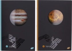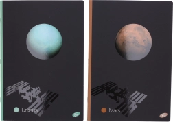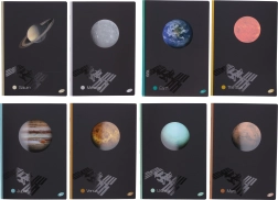 Črtasti zvezek A4 z motivom planet ponuja 40 listov v klasični mat vezavi. Idealen je za zapiske, misli in ideje doma, v šoli in v pisarni. Prostor za vnos podatkov na sprednji strani in urnik na zadnji olajša organizacijo. Izberite svoj najljubši motiv: Sonce, Luna, Merkur, Mars, Saturn ali Uran.