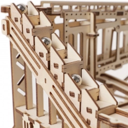 ROBOTIME ROKR Marble Run Squad je podrobno 3D leseno puzzle, ki po sestavi oživi z pametno mehaniko. Zavrtite ročico in opazujte, kako jeklene kroglice švigajo po ravnih in nagnjenih stezah, prečkajo padajoča vrata in se dvigajo z dvigalom. Model izstopa po preciznem laserskem izrezu, stabilni konstrukciji in je izdelan iz varnih, nestrupenih materialov.