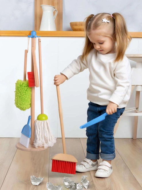 Lesena čistilna garnitura Lucy & Leo je idealna igrača za male pomočnike. S to igro se otroci na zabaven način naučijo osnov pospravljanja, kar spodbuja njihove motorične spretnosti in občutek za odgovornost.