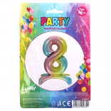 Stilski folijski balon v obliki številke 8 z mavričnim učinkom je odlična izbira za rojstne dneve, obletnice in tematske zabave. Zaradi izrazitih barv in velike velikosti deluje kot domiselna dekoracija in fotogeničen dodatek vsake zabave.