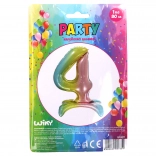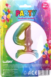 Popestrite svojo zabavo z mavričnim balonom v obliki številke 4. Velik format je viden tudi od daleč, barvni preliv pa ustvari privlačen učinek, ki se odlično poda k moderni dekoraciji za rojstni dan ali jubilej.