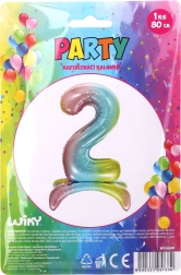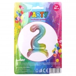 Oblecite rojstni dan ali obletnico v stil s tem napenljivim folijskim balonom v obliki številke 2 v trendovskem mavričnem videzu. Idealen za fotokotičke, okrasitev dvoran in domače zabave, ponuja izrazite barve in velikost do 80 cm v nenapihnjenem stanju.