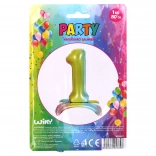 Stajliš folijski balon v obliki številke 1 v mavričnih barvah bo vašim praznovanjem dodal edinstven videz. Idealen za rojstne dneve, obletnice in fotokotičke. Zaradi velike velikosti 80 cm odlično izstopa in ustvari učinkovito dekoracijo.