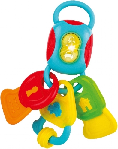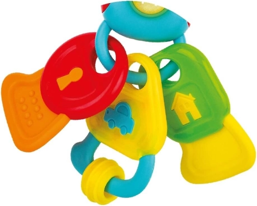 Ljubki ključi – ropotulja in grizalo v enem – so idealna prva igrača za dojenčka. Žive barve, varni materiali ter svetlobni in zvočni učinki ohranjajo otrokovo pozornost, hkrati pa pomirjajo razdražene dlesni ob izraščanju zobkov. Lahka oblika olajša držanje tudi najmlajšim ročicam.