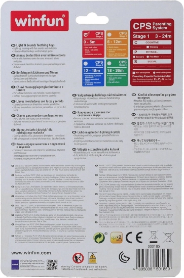 Barvito grizalo v obliki ključev združuje ropotanje, lučke in zvoke za zabavo ter olajšanje pri izraščanju zobkov. Lahka zasnova in enostaven oprijem podpirata razvoj fine motorike, medtem ko raznolike teksture nežno masirajo dlesni ter spodbujajo tip in vid.