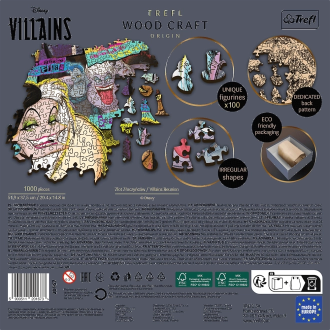 Odkrijte vrhunske dvostranske lesene puzzle TREFL iz serije Wood Craft Origin z motivom Disney: Srečanje zlikovcev. Zahvaljujoč natančni laserski obdelavi koščki popolno prilegajo, robovi so gladki, sestavljanje pa ponuja neponovljivo izkušnjo za ljubitelje puzzlov in sveta Disney. Čaka vas 100 edinstveno oblikovanih koščkov, dvostranski tisk in okolju prijazna embalaža brez plastike.