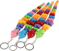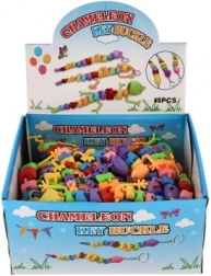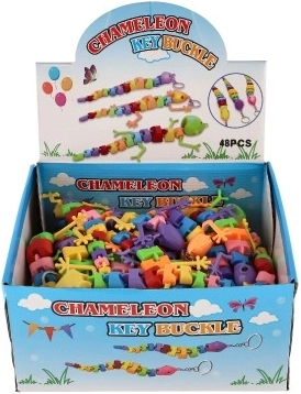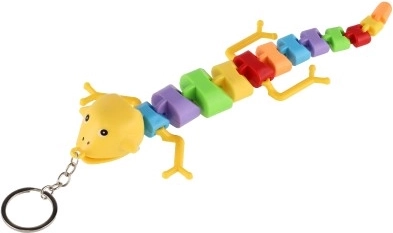 Zahvaljujoč kovinskemu obročku ga zlahka pripnete na ključe ali nahrbtnik. Na voljo v pisani mešanici barv in oblik (kuščar/kameleon/kača).