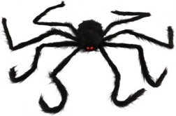 Ta ogromni črni plišasti pajek takoj pritegne pozornost in ustvari ravno pravo mero napetosti. Idealen je za okrasitev vhodnih prostorov, oken, polic ali zabavnih miz, zaradi svoje velikosti pa postane dominanta vsake dekoracije za noč čarovnic.