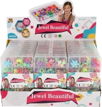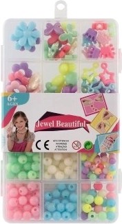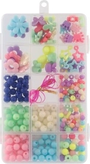 Ustvari svoje nakitne kose preprosto in zabavno! Ta set ponuja barvite plastične perlice v različnih oblikah in velikostih, dopolnjene z vrvico za nizanje. Praktična prozorna škatlica s predelki ohranja vse pregledno na svojem mestu in je idealna za ustvarjanje doma ali na poti.