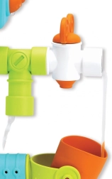 Igra z vodo razvija koordinacijo oko–roka, logično razmišljanje in domišljijo. Priseski omogočajo enostavno pritrjevanje na gladke kopalniške ploščice. Trpežna plastična izvedba je enostavna za vzdrževanje in primerna za vsakodnevno uporabo.