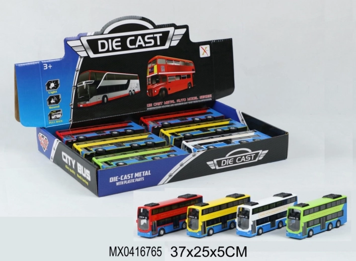Avtobus s svetlobnim in zvočnim učinkom ponuja zabavo za vse ljubitelje modelov. Funkcija pull back omogoča preprosto navijanje in vožnjo.