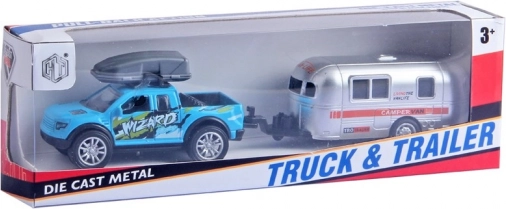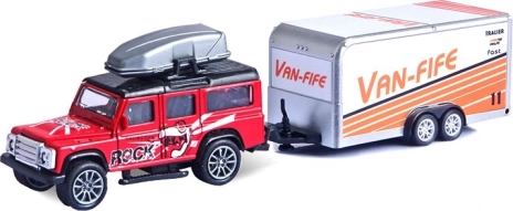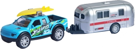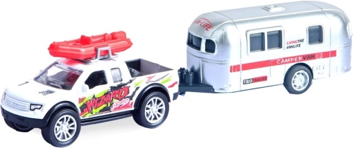 Zabaven kovinski model avtomobila s prikolico v štirih izvedbah prinaša realistične podrobnosti, odpirajoča se vrata in akcijsko funkcijo pull back – potegni nazaj in vozi. Zaradi vrtečih se koles in odstranljive prikolice bodo otroci uživali ure ustvarjalne igre o potovanjih in kampiranju.