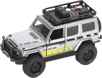 Ta podrobno izdelan terenski džip v merilu 1:36 združuje trdno kovinsko konstrukcijo z realističnimi elementi za maksimalno doživetje igre. Zahvaljujoč pogonu na poteg je dovolj, da avtomobilček potegnete nazaj in opazujete, kako živahno pospeši naprej. Odpiralna vrata dodajo interaktivnost in omogočajo vpogled v kabino.