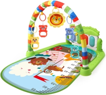Igralna podloga ima vesele barve in različne materiale. Mehak material nudi prijeten občutek. Na igralnem loku so obešene vesele, pisane živalice. Primerno za otroke od 3 mesecev. Del podloge je interaktivni klavirček.