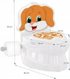 Robustna plastična konstrukcija je zasnovana za vsakodnevno uporabo in otrokom nudi občutek varnosti pri sedenju. Vgrajeno držalo za toaletni papir podpira razvoj pravilnih higienskih navad in otroke približa uporabi prave WC-školjke.