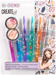 Bodite ustvarjalni s tem izjemnim tetovirnim kompletom znamke CREATE it!. Komplet vsebuje šest barvitih dišečih per v odtenkih rožnate, modre, vijolične, zelene, oranžne in srebrne, kar vam omogoča ustvarjanje neomejenega števila motivov. Vsako pero ima dekorativen videz in dišavno esenco za še bolj zabavno izkušnjo.