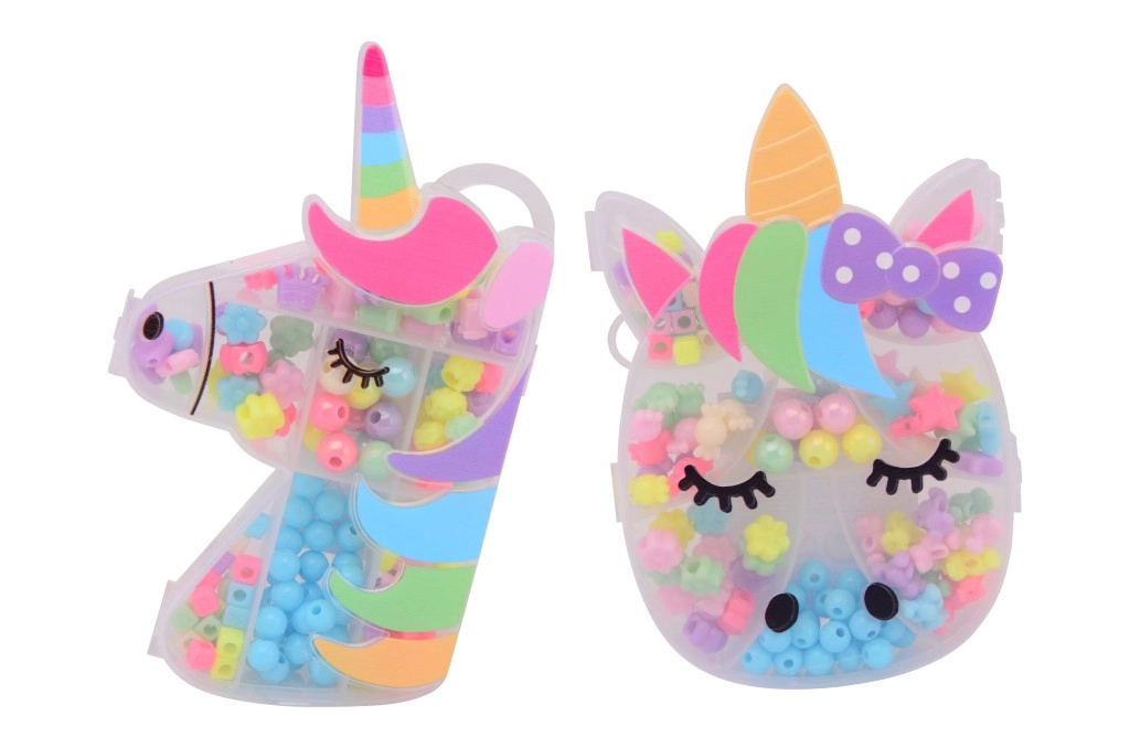 Odkrijte čar ustvarjanja s trendovskim kompletom perlic, ki je shranjen v pregledni škatlici v obliki samoroga. Škatlica olajša razvrščanje in prenašanje, zato imate vse perlice vedno pri roki.