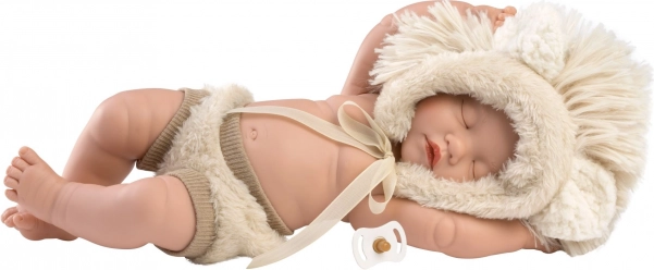 Ta speča realistična punčka je idealna za otroke, ki želijo doživeti občutek skrbi za dojenčka. Zaradi celovinilnega telesa je punčko mogoče kopati, njen dizajn pa zajema vsako podrobnost otroškega telesca, vključno s prikupnimi gubicami. Punčka ima gibljive roke in noge, zato je nastavljiva in lahko sedi. Del paketa je dudica, ki služi kot stilski dodatek. Ta punčka je ročno izdelana v Španiji in je zapakirana v lepo darilno škatlo.