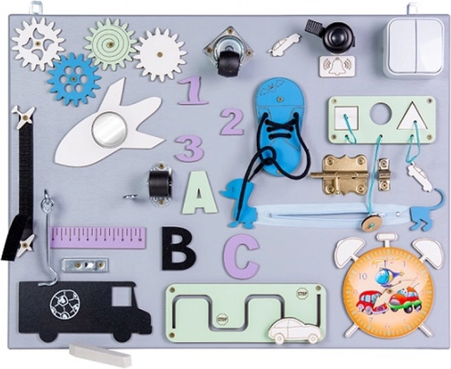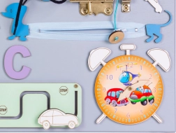Ta lesena didaktična in senzorična tabla je zasnovana tako, da otroci na igriv način odkrivajo svet okoli sebe. Vsebuje različne interaktivne komponente, ki posnemajo predmete iz vsakdanjega življenja, in omogoča varno spoznavanje s praktičnimi veščinami. Gladko brušen les in kakovostna izdelava zagotavljata varnost in dolgo življenjsko dobo.