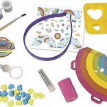 Ustvarjalni set za izdelavo štirih dodatkov v mavričnih barvah. Dovolite otrokom, da sprostijo domišljijo z modelirno maso, tempera barvami, volno in drugim materialom.