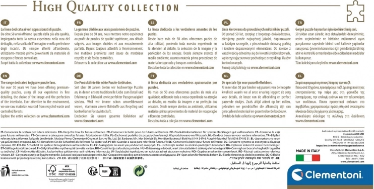 - Izdelano pri znamki Clementoni – priznani proizvajalec kakovostnih in 3D sestavljank