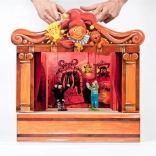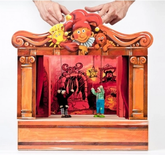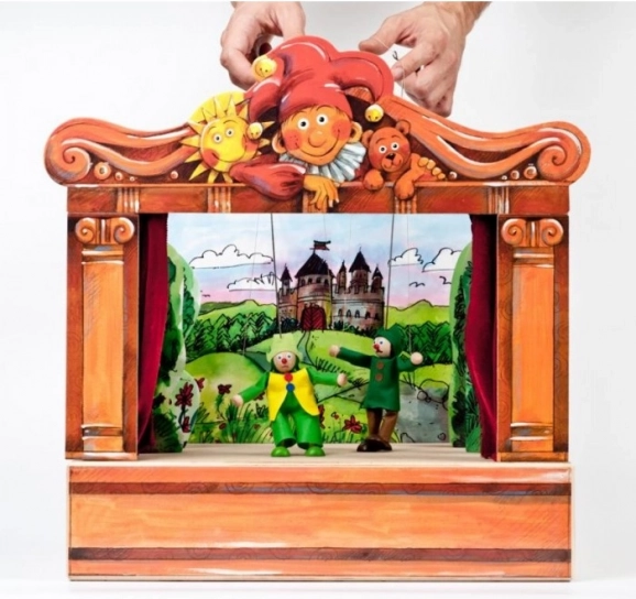 Čudovito izdelani detajli lesenega gledališča ustvarjajo pravljično atmosfero, ki otroke popelje v čarobni svet.