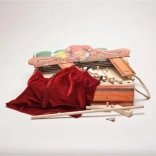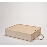 Celoten komplet je praktično zapakiran v lesenem kovčku z drsnim pokrovom za enostavno prenašanje.