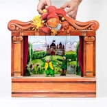 Čudovito izdelano lutkovno gledališče je idealno za otroke od 3. leta dalje. Ta gledališče vsebuje 8 lesenih lutk in štiri dvostranske kulise, ki prinašajo čar pravljic v otroško sobo. Lutke se lahko razlikujejo v barvnih detajlih, kar dodaja k avtentičnosti. Komplet vključuje: