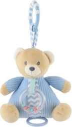 Ta mehkužen medvedek v modri barvi hkrati pomirja in zabava – po navijanju predvaja prijetno melodijo približno 1 minuto in 20 sekund, medtem ko prozorna ropotuljica z barvnimi kroglicami podpira slušno zaznavanje in koordinacijo gibov. Zaradi kompaktne velikosti 18 × 18 cm ga odlično držijo tudi najmanjše ročice.