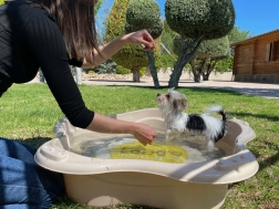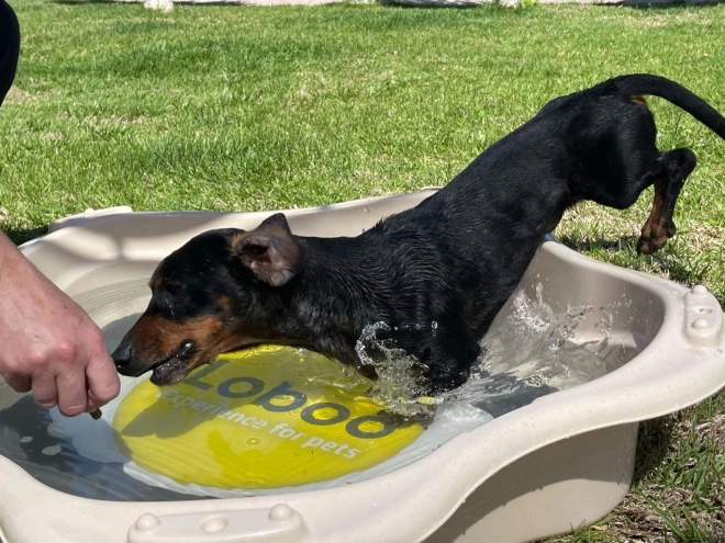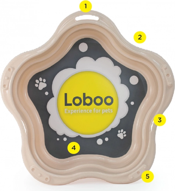 Ta prostoren bazen za hišne ljubljenčke je idealen za higiensko kopanje in poletno hlajenje na vrtu. Lahka, a trdna konstrukcija iz materiala, obogatenega z mandljevimi lupinami, zagotavlja daljšo življenjsko dobo in manjši okoljski odtis. Dekor, odporen na vodo in UV-sevanje, je uporabljen z IML tehnologijo, zato se ne lušči in ne bledi.