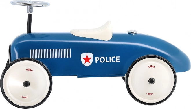 Uživajte v zabavi z modrim poganjalcem Vilac v slogu policijskega avtomobila. Ta poganjalec je v celoti kovinski, kar zagotavlja visoko vzdržljivost in stabilnost. Zahvaljujoč gumiranim kolesom je zelo tih, tudi na trdi podlagi. Opremljen je z volanom, ki omogoča enostavno upravljanje.