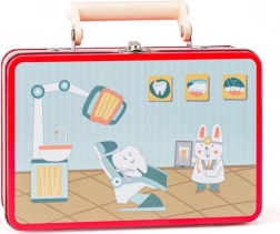 Ta stilska otroška zobozdravniška garnitura ponuja vse, kar je potrebno za prve igre zobne ordinacije. Leseni pripomočki so prijetni v roki, varni in vzdržljivi, kovinska škatla pa vse pregleno hrani skupaj doma ali na poti. Odlično za razvoj socialnih veščin in premagovanje strahu pred zdravnikom.