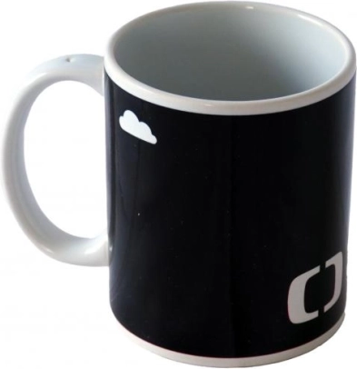 Termokromatski potisk po prelitju z vročim napitkom razkrije igrive motive Déčka – ko se skodelica ohladi, se znova obarva v črno.