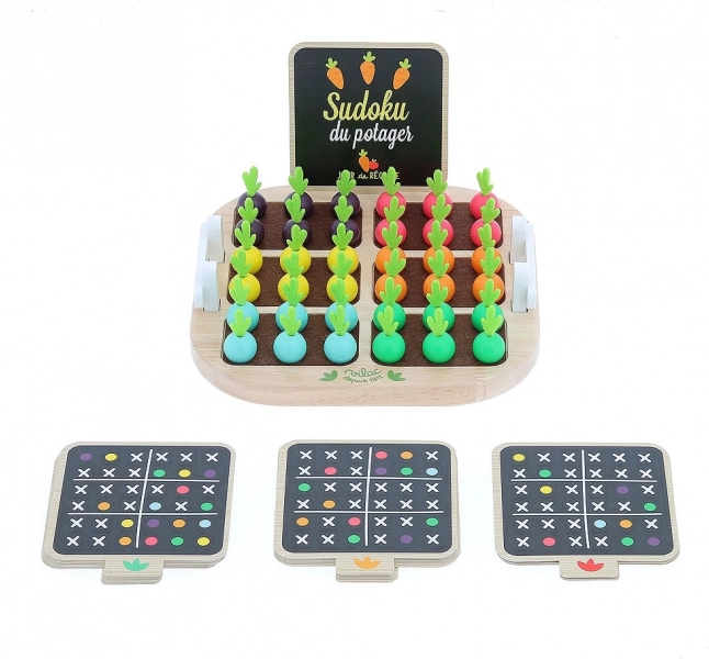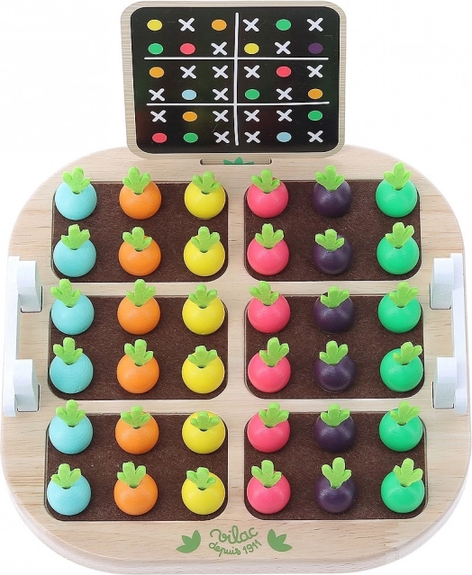 Edinstvena priložnost, da otroke zabavate in hkrati razvijate njihove kognitivne sposobnosti. Igra Zelenjavno sudoku je izdelana iz kakovostnega lesa, kar zagotavlja stabilnost in trpežnost. Z barvitimi lesenimi koščki v obliki zelenjave otroci poskušajo zapolniti mrežo po priloženih karticah, ne da bi se v isti vrstici, stolpcu ali bloku barve ponavljale.