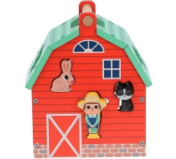 Lesena kmetija z živalmi in sestavljanko je idealna za male pustolovce, ki želijo spoznati svet kmetije in živali. Originalni dizajn avtorice Ingela P. Arrhenius združuje lepoto retro stila in ekološko proizvodnjo.