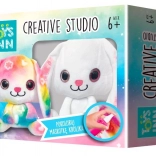 Ta ustvarjalni komplet prinaša vse, kar otroci potrebujejo za lastno barvanje in okraševanje plišastega zajčka. Zahvaljujoč barvam v priročnih razpršilnikih je dekoriranje preprosto in zabavno, nalepke pa končni maskoti dodajo edinstven slog.