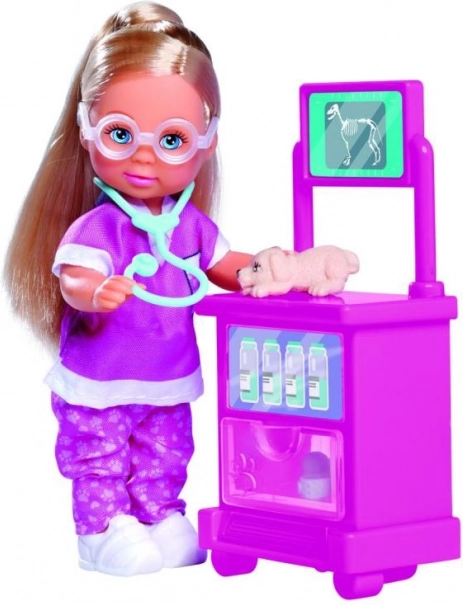 Odkrijte čar skrbi za živali s punčko Evičko kot veterinarko. Set vključuje 3 prisrčna mladička, pregledno mizico in zdravniške pripomočke za realistično igro poklicev. Odlično za razvoj domišljije in empatije. Višina punčke je 12 cm.