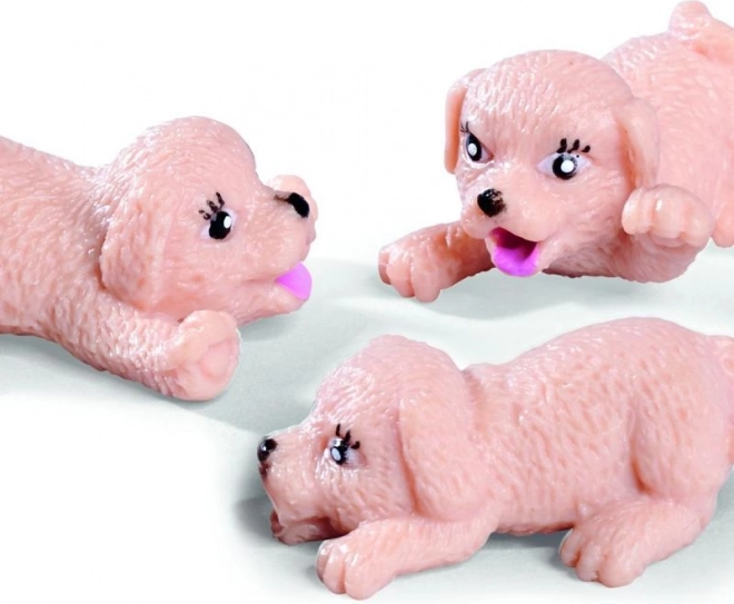 - Popoln veterinarski set: punčka, 3 mladički, pregledna mizica in orodja.